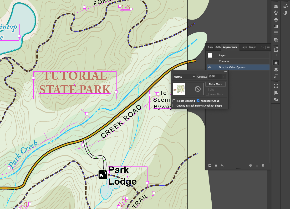 Knockout Groups are one of the best-kept secrets in Illustrator for map design. Once you understand how the Appearance Panel, layer structure, and opacity settings work together, you’ll wonder how you ever labeled maps without them.