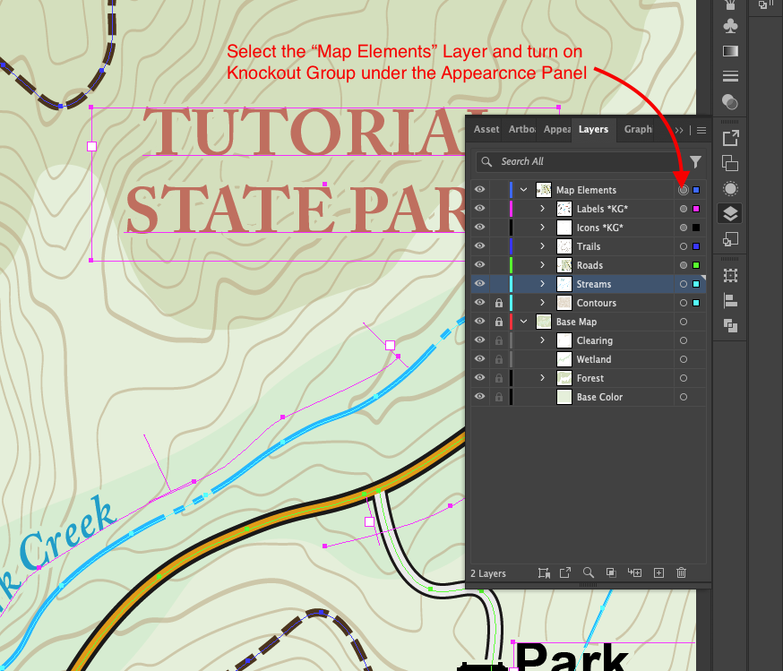 Knockout Groups create a “clear zone” around text and objects, making your maps easier to read