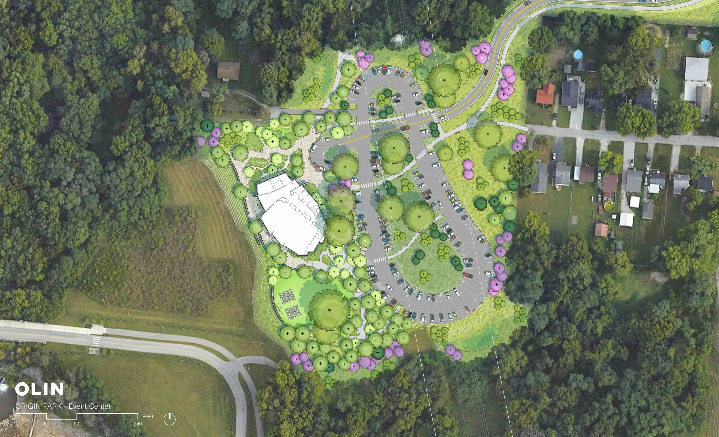 Origin Park is a transformative 600-acre regional park currently under development along the Ohio River. Envisioned as a major ecological and recreational resource, the park will feature over 300 acres of restored native habitat, 16 miles of trails, and 3 miles of scenic roads, serving as a vital missing link in the region’s green infrastructure. Led by OLIN, the master plan for Origin Park began in 2018 and represents a long-term investment in restoration, connectivity, and public access to nature.
